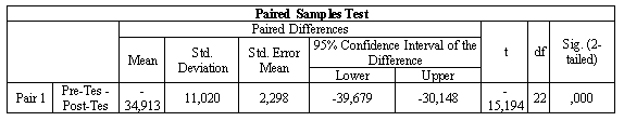 Comparison Test of Pre-test and Post-test Results