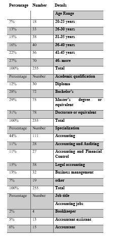 The academic specialization of the sample members was the majority of them within the specialization of accounting, auditing and legal accounting, as their percentage reached 81%.