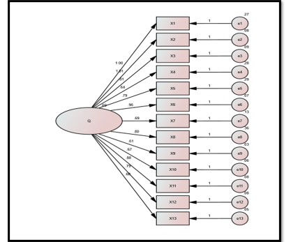 The factor analysis of the external auditor's performance quality variable was also measured through 13 paragraphs and through figure (4) it is possible to judge the validity of the statement of no value greater than (40.0) shown on the shares, which links the underlying variables with each paragraph of the scale, which showed that all conformity quality indicators for the external auditor's performance quality variable.