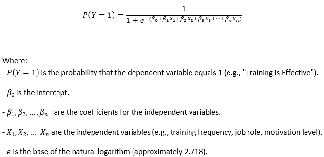 And the dependent variables in the survey data are usually binary or categorical so that the logistic regression model is selected. For example, comparing answers to questions of training effectiveness ("very effective" vs. Or motivation ("Highly with their peers ("Not Effective" vs. This is represented by binary outcomes (Not Motivated). Using independent variables of training frequency, job position, sustainability familiarity, the logistic regression estimates the probability that a given outcome will occur.