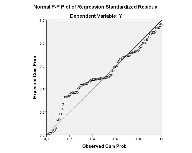 Berdasarkan tabel di atas dapat dinyatakan bahwa nilai untuk Durbin Watsonnya adalah 1,969, maka tidak terjadi autokorelasi. Karena sesuai ketentuan yang berbunyi “nilai DW diantara -2 dan +3, maka ini tidak terjadi autokorelasi”