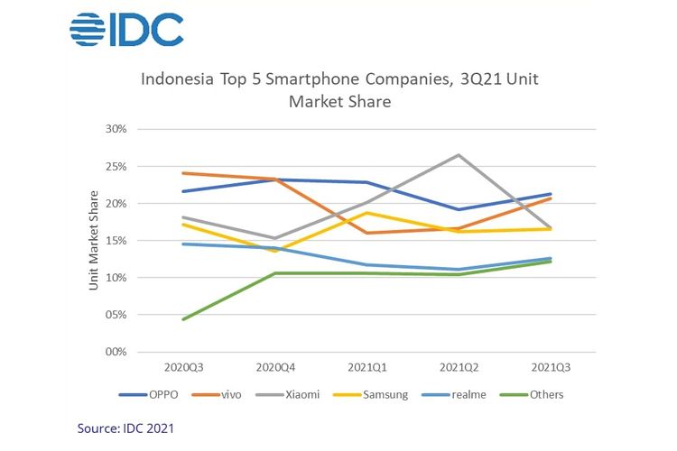 Sumber : idc.com, Indonesia smartphone market kuartal III-2021