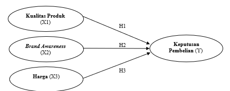H2 : Secara parsial diduga brand awareness berpengaruh terhadap keputusan pembelian.