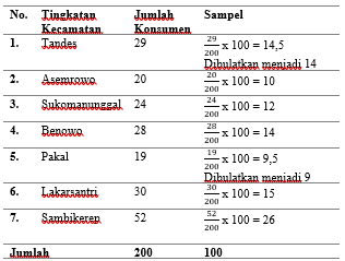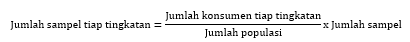 Perhitungan untuk menentukan besarnya sampel pada setiap tingkatan konsumen dilakukan dengan alokasi Proporsional dengan cara :