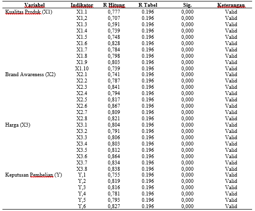 Figure 3. Tabel 1. Sampel Penelitian Hubungan Antara Kualitas Produk, Brand Awareness, Harga Terhadap Keputusan Pembelian UMKM Kedai Sukidayo Surabaya