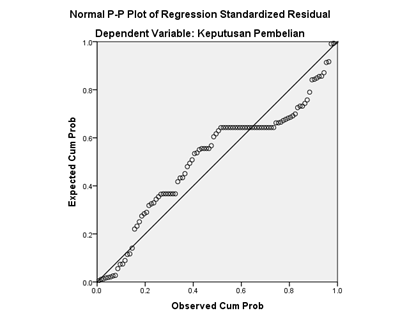 Pada gambar 2 terlihat titik menyebar di sekitar garis diagonal dan penyebarannya mengikuti garis diagonal. Sehingga dapat disimpulkan bahwa model regresi yang digunakan dalam penelitian ini memenuhi kriteria normalitas.