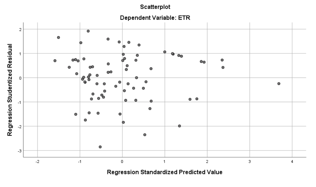 Berdasarkan table 4, hasil uji multikolinearitas memiliki nilai tolerance Leverage X1 = 0.984, Ukuran Perusahaan X2 = 0.972, Intensitas Aset Tetap X3 = 0.965 secara simultan lebih besar dari > 0,01 dan nilai VIF Leverage X1 = 1.016, Ukuran Perusahaan X2 = 1.029, Intensitas Aset Tetap X3 = 1.037 lebih kecil dari <10. Sehingga bisa disimpulkan bahwa penelitian ini tidak terjadi auto korelasi antar variabel independen dalam model regresi.