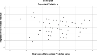 Pada penelitian ini memiliki jumlah responden 60 atau N=60 dengan jumlah variabel bebas 3 atau K=3, sehingga diperoleh dL= 1.4797 dan dU= 1.6889. Dengan demikian dU < d < 4-dU. Dari tabel 6 diatas diketahui bahwa nilai DW (Durbin-Watson) sebesar 1778. Dengan dasar pengambilan keputusan sebagai berikut (du< d < 4- du = 1.6889 < 1.778 < 2,311) artinya tidak terkena autokorelasi, maka regresi berganda dalam penelitian ini tidak terkena autokorelasi.