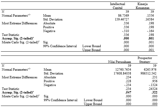 Uji normalitas dilakukan untuk melihat apakah sebuah data berdistribusi normal atau tidak. Dalam penelitian ini peneliti mengggunakan analisis non parametik Kolmogrov Sminorv (K-S). Uji yang dilakukan untuk melihat normalitas adalah dengan menggunakan uji One Sample Kolmogrov-Sminorv dinyatakan normal apabila nilai signifikansi lebih besar dari 0,05 [21].