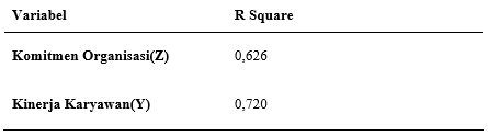 Variabel Komitmen Organisasi (Z) terhadap Kinerja Karyawan (Y)