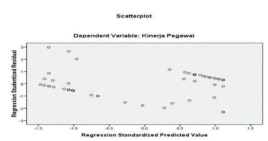 Uji heterokedasitas bisa dilihat melalui grafik, apabila dalam grafik terdapat pola tertentu seperti bergelombang, melebar ataupun menyemit, maka hal tersebut bisa di katakan akan mengindikasi telah terjadi heterokedasitas. Namum jika tidak ada pola yang jelas serta titik yang menyebar dia tas dan di bawah angka 0 pada sumbu Y, maka hal tersebut tidak terjadi heterokedasitas. Cara mendeteksi ada atau tidaknya heterokedasitas yaitu dengan melihat data pada gambar scatterplot berikut: