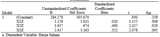 Pada tabel tersebut mengenai hasil pengolahan SPSS, maka dapat dibuat persamaan regresi berganda sebagai berikut: