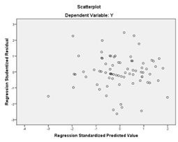 Berdasarkan tampilan scatterplot, titik-titik residual tersebar secara acak di sekitar garis horizontal nol tanpa membentuk pola tertentu seperti menyebar melebar atau menyempit pada titik-titik tertentu. Penyebaran yang acak dan menyebar merata ini mengindikasikan bahwa tidak terjadi pola sistematis antara nilai prediksi dan residual [44]. Sehingga dapat disimpulkan bahwa tidak terdapat gejala heteroskedastisitas pada model regresi ini dan model regresi dianggap valid untuk digunakan karena varians dari residual adalah konstan di seluruh tingkat nilai prediksi.