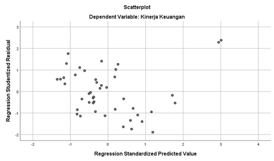 Sesuai hasil grafik tersebut, titik-titik nampak tidak membentuk pola secara jelas dan menyebar baik di atas ataupun dibawah 0 pada sumbu Y, maka dapat ditarik kesimpulan jika tidak terjadi heteroskedastisitas. Tidak adanya heteroskedastisitas ditunjukkan dengan penyebaran acak titik-titik residual di atas dan di bawah angka 0 pada sumbu Y (Ghozali, 2013:139). [28]