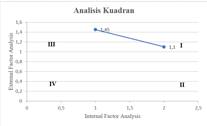 Dari gambar tersebut, dapat diketahui bahwa Ninja Xpress berada pada titik kuadran I pada grafik, yang menunjukkan bahwa perusahaan berada dalam situasi yang menguntungkan. Hal ini disebabkan oleh kombinasi antara peluang eksternal yang besar dan kekuatan internal yang kuat. Perusahaan memiliki jaringan distribusi yang luas dan teknologi logistik canggih, sementara pertumbuhan e-commerce memberikan peluang besar di pasar.