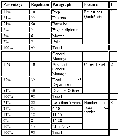 Tenth: Specifications of the research sample: Table 1 shows the most important specifications of the research sample, which are expressed in the points below: