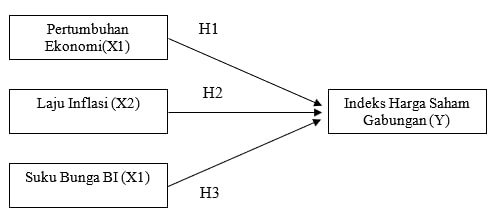 Generally, investors use the Composite Stock Price Index (IHSG) as a parameter of stock performance listed on the Indonesian stock exchange. One of the factors that can affect the IHSG is macroeconomic factors such as economic growth, inflation, and interest rates. This study aims to determine the effect of economic growth, inflation rate, and interest rates of Bank Indonesia on the IHSG. The population and sample in this study are quarterly economic growth, inflation, Bank Indonesia interest rates, the monthly Composite Stock Price Index (IHSG) from 2015-2019. Testing the hypothesis of this study using validity and reliability tests with the SmartPLS version 3 application. The results showed that the variables of economic growth and inflation had no significant effect on the Composite Stock Price Index (IHSG). Meanwhile, the interest rate variable of Bank Indonesia has a significant effect on the IHSG.