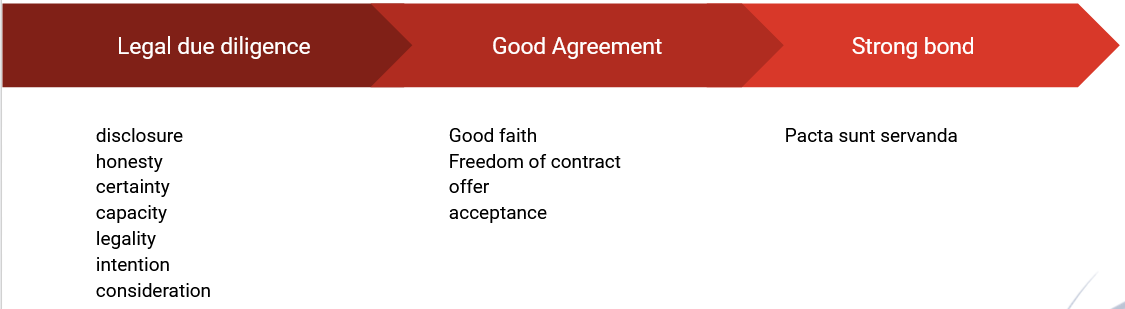 Berdasarkan apa yang disampaikan oleh Howson, maka uji tuntas ini diharapkan dapat membantu untuk terciptanya keterbukaan dalam melakukan perjanjian (disclosure), keterbukaan tersebut akan melahirkan itikad atau niat yang baik (good faith). Niat yang baik tentunya akan melahirkan perjanjian yang baik (good agreement). Sehingga prinsip-prinsip dasar dari kontrak dapat tercapai dengan optimal (figure 1).